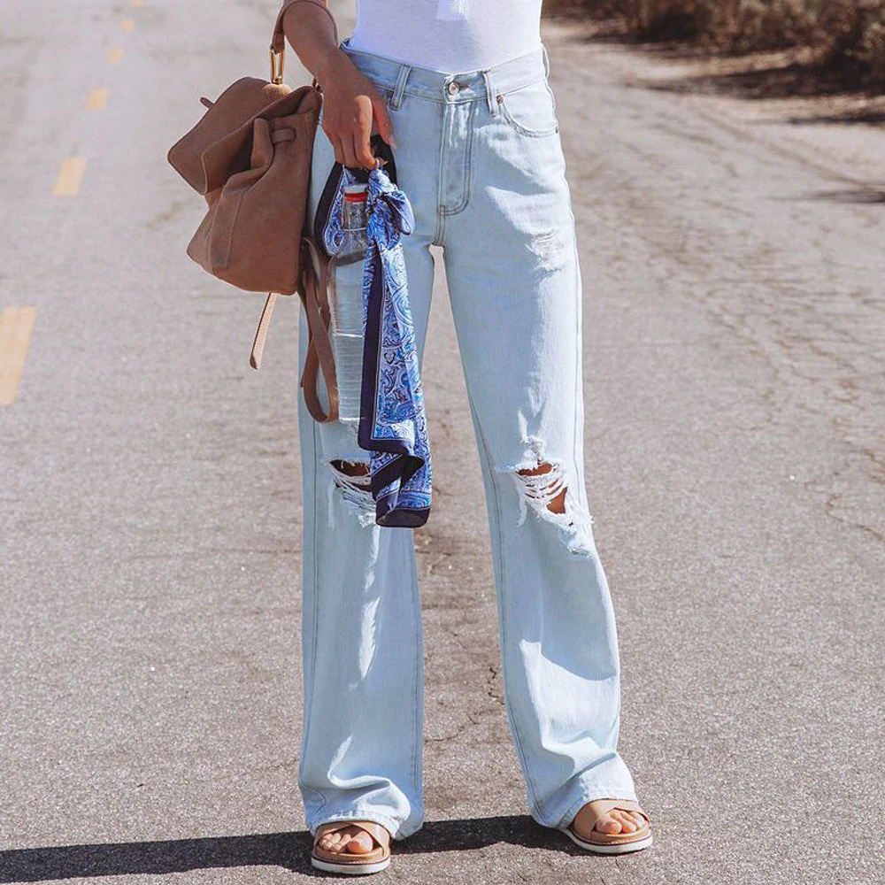 Jeans évasés pour femmes dans un style Destroyed tendance avec taille haute