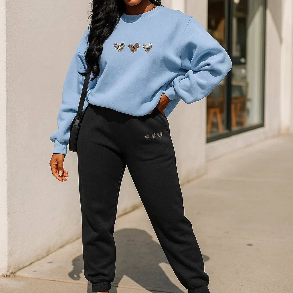 Salopette femme - ensemble deux pièces - tricot et joggers - cœurs